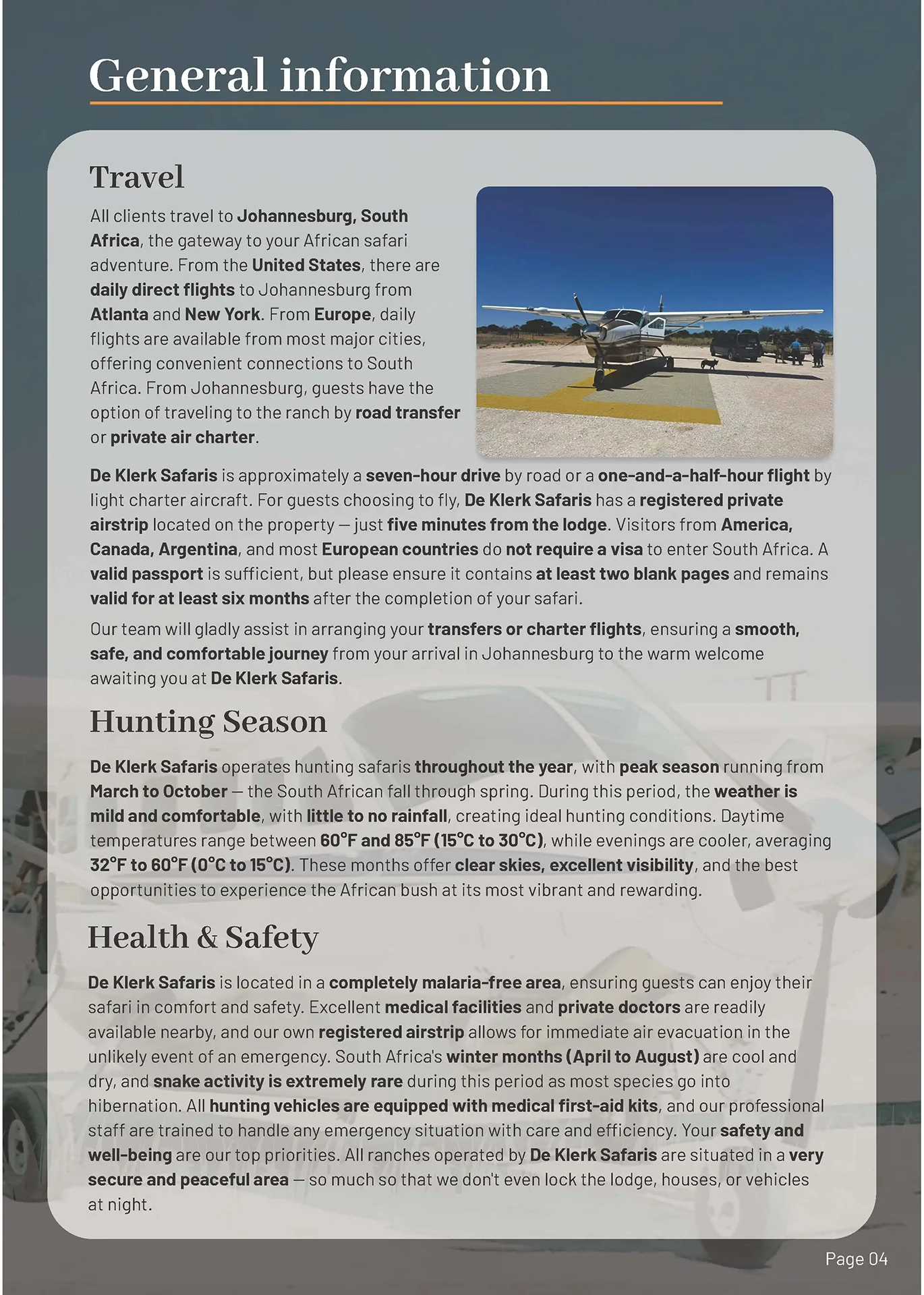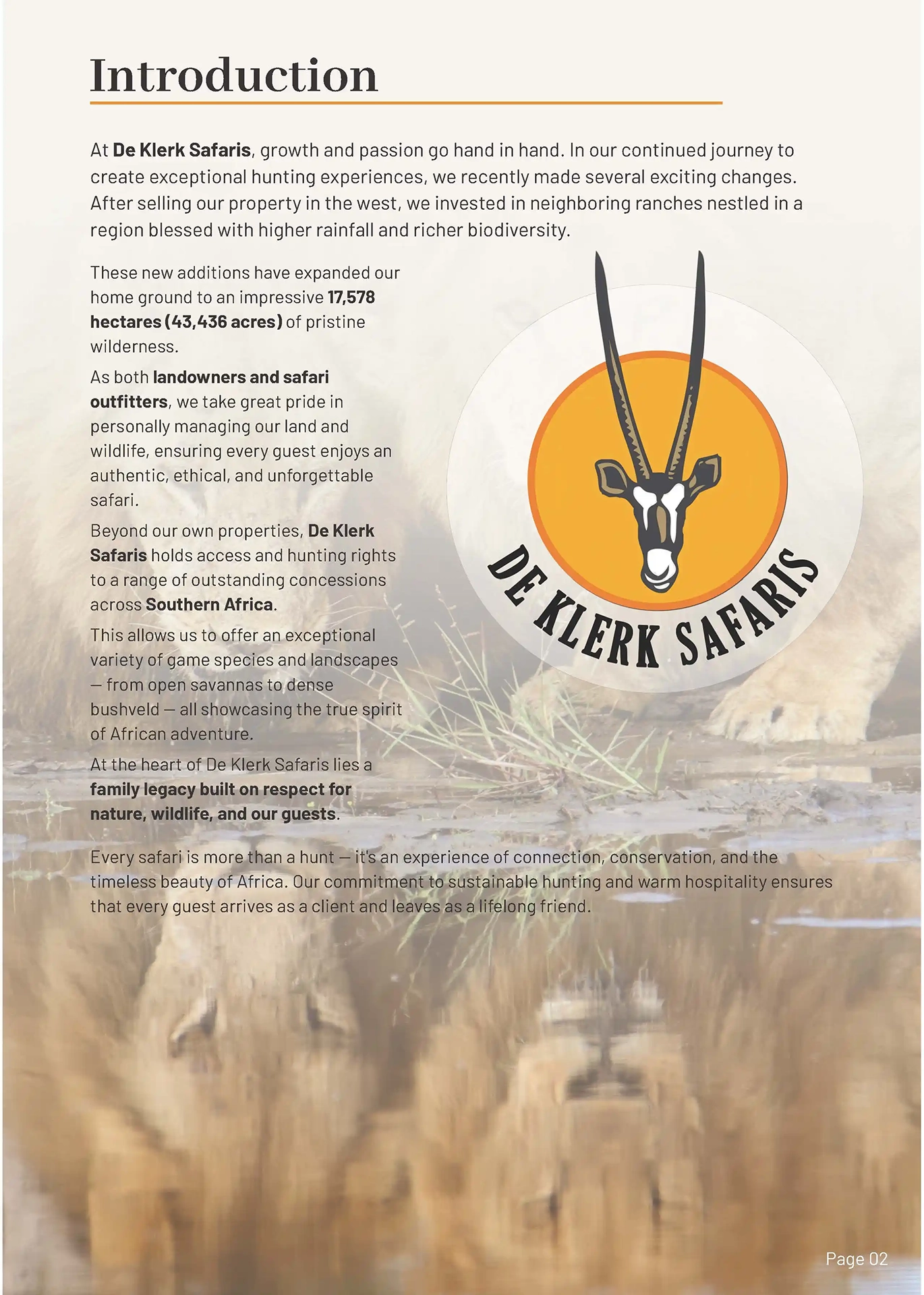The Result The final result is a premium, print-ready brochure that reflects the high-end experience De Klerk Safaris offers. By handling the technical complexities of the double-page spread transition and image upscaling, I protected the client from the costly mistake of a “blurry” print run.